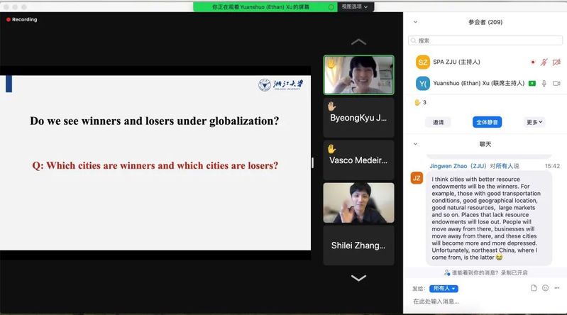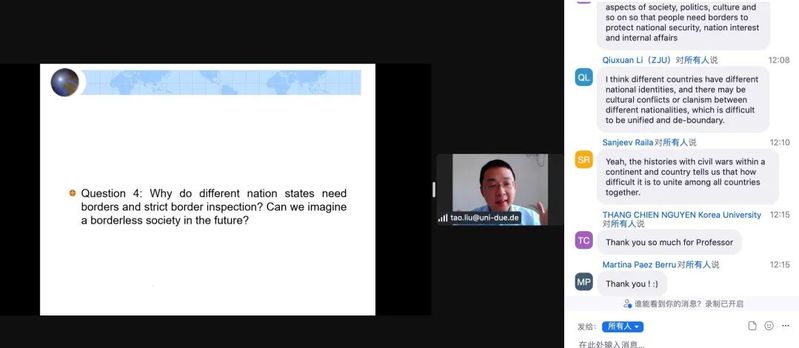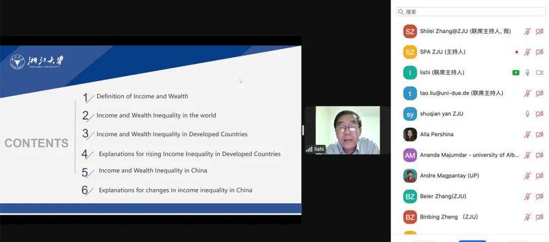 8月10日至14日,包容性发展课程的学习进入到了第四模块——全球社会政策(Global Social Policy)。该部分课程由公共管理学院社会保障与风险管理系刘涛教授主讲,浙江大学共享与发展研究院院长李实教授作特邀演讲。刘涛在课程中讲述了全球社会政策的相关理论,对各类国际组织及其如何影响全球社会政策做了全面详细的介绍,并从社会全球化、新自由主义全球化、再社会化全球化等方面介绍了全球养老金政策制定与全球养老金管理。李实则从收入和财富等相关概念出发,带大家了解全球各地区收入和财富不平等的相关数据,并解释收入不平等加剧的原因。在课堂讨论环节,来自世界各国的同学积极参与,踊跃发表自己的看法和评论,同学们纷纷表示希望在课程结束后能够继续一起学习和交流。
