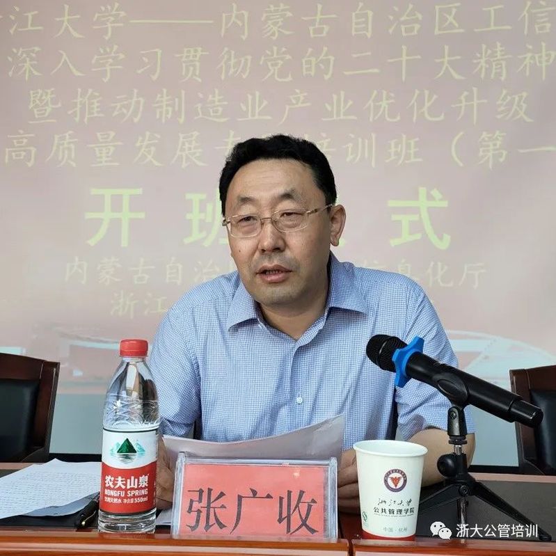 内蒙古自治区工业和信息化厅副厅长张广收,浙江大学公共管理学院党委书记、副院长杨国富出席开班仪式,仪式由浙江大学公共管理学院继续教育培训事业部部长徐荷双主持。内蒙古自治区工信厅主要负责人、各盟市政府、工信局主要领导共67人参加本次培训。