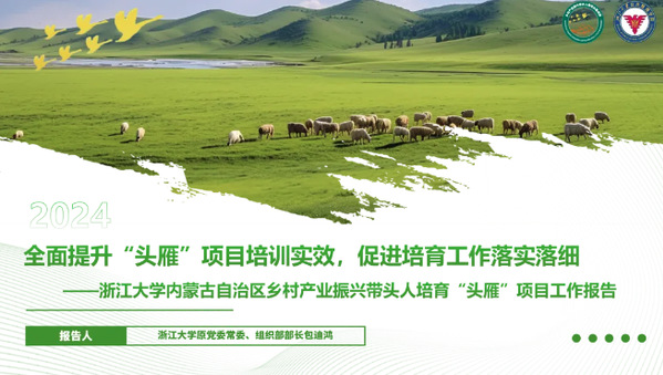 浙江大学公共管理学院依托农林经济管理专业优势和中国农村发展研究院的科研优势多措并举持续做好内蒙古自治区头雁培育计划,着重输出“两大成果”一是浙江农业产业化在运营、品牌、销售、科技的先行优势,用浙江理念充实内蒙古头雁的“理念思维”;二是植入“知识芯片”,充分发挥浙江大学农学领域的学科优势,凝聚力量,整合资源,在相关农学领域,继续举全院之力,全面保障“头雁”的学习需求,大力促进“头雁”技术能力和管理能力提升、专业知识和创新理念迭代,为培养高素质复合型涉农人才奉献浙大方案。